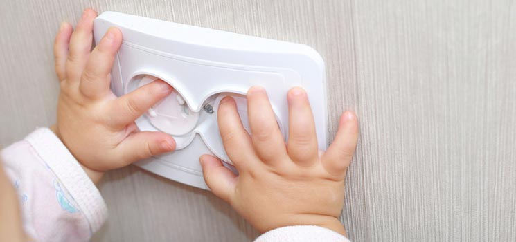 - Entfernen und Abstand halten: ein Mindestabstand von einem Meter zwischen den elektrischen Geräten wie Nachttischlampe und Babyphone, Steckdosen, Kabeln und dem Kinderbett schaffen. Am besten möglichst alle elektrischen Geräte aus dem Kinderzimmer entfernen.