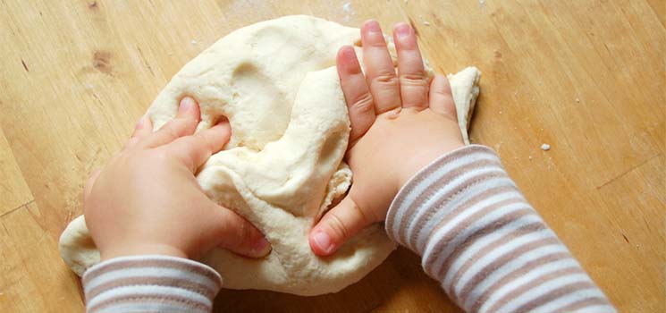 Alternativ zu gekaufter Knete, die oft für die kleinen Hände zu hart ist und künstlich riecht, lässt sich Knetmasse mit einfachen Mitteln auch zuhause herstellen. Dabei solltest du aber auf den Zusatz von Alaun verzichten, da es Schleimhäute und Haut reizen kann. „Alaun ist eine Chemikalie und hat in Kinderspielzeug nichts zu suchen“, betont Professor Martin Schulz, Vorsitzender der Arzneimittelkommission der Deutschen Apotheker (AMK). Doch es geht auch ganz ohne Chemie: Die folgende Variante mit Mehl erinnert etwas an Salzteig, bleibt aber länger geschmeidig.