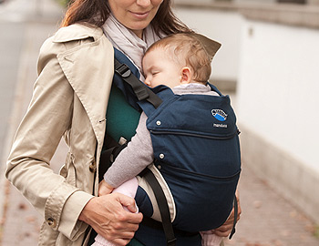 Wer sein Kind tragen möchte und dabei noch nicht auf Erfahrungen zurückgreifen kann, steht ohnehin leicht ratlos vor einem ständig wachsenden Markt an Tragehilfen, der vom klassisch zu bindenden Webtuch bis zum rucksackartigen zwei Klick-System reicht. Wer am besten mit welcher Variante zurechtkommt, ist dabei oft Geschmackssache und muss im Zweifelsfall ausprobiert werden. Grundsätzlich gilt aber: Bei einer guten Tragehilfe sitzt das Kind in der sogenannten Anhock-Spreiz-Haltung. Das heißt, die Oberschenkel sind in einem Winkel von ca. 100°-110° angehockt, die Knie befinden sich auf Nabelhöhe des Kindes. Darüber hinaus muss die Wirbelsäule des Babys und bei einem Kind in den ersten Lebensmonaten auch der Kopf ausreichend gestützt sein. Außerdem lässt sich eine gute Tragehilfe immer auch individuell an die Trägerin oder den Träger anpassen. Wird das Baby vor dem Bauch getragen, sitzt es in Blickrichtung zum Tragenden.