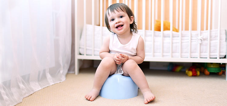 - Achte auf die Sprache: Wenn bislang von „a a“ oder „Pipi“ die Rede war, sollten diese Wörter auch in Verbindung mit dem Töpfchen beibehalten werden, damit dein Kind weiß, was die Topfsitzung bedeutet.