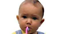 Mit dem ersten Zahn beginnt auch die Zahnpflege. Das Milchgebiss bedarf ebenso intensiver Reinigung wie das spätere Gebiss.Hat sich der erste Zahn ans Licht gebohrt, solltest du mit dem regelmäßigen Putzen beginnen. Die Zahnbürste dafür sollte selbstverständlich für Kleinkinder vorgesehen sein und sehr weiche Borsten haben, um das empfindliche Zahnfleisch nicht zu reizen. Neu und als sinnvolle Alternative gedacht, ist eine Fingerhut-Zahnbürste, die aus weichem Gummi besteht und über den Finger gestülpt wird. Zum Putzen gehört auf die Zahnbürste ein Hauch fluoridierter Kinderzahncreme (500ppm). Verwende keine allzu süße Zahncreme, sonst wird das Kind sie eher herunter schlucken, anstatt damit die Zähne zu putzen.