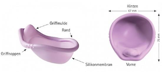 Griffmulde: erleichtert das Entfernen des Diaphragmas aus der Scheide