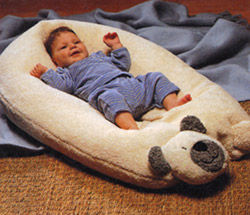 Vorteil: Bis sich das Baby alleine bewegt überall zu platzieren, weich und sicher. Die Babys liegen mit dem Kopf etwas erhöht, und können so das Familienleben gut verfolgen. Tolle Mehrfachnutzung des Stillkissens!Ab wann: Sofort nach der Geburt.