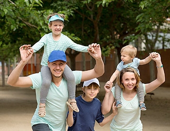 Julia (36) und Andi (48) Schell, Eltern von Adrian (5) und Emelie (2), zur Patchworkfamilie gehören Andis Kinder Larissa (25) und Sven (23) aus erster Ehe: