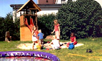 Unsere Ferienwohnung hat mir auf Anhieb gefallen. Alles total nett eingerichtet und man konnte durch die Küche direkt auf die Terrasse und in den großen Garten mit Sandkasten, Schaukel und Rutsche gehen.