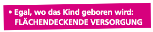 Hebammen gibt es in ganz Deutschland. Aber nicht an jedem Ort arbeiten so viele wie gebraucht werden. In manchen Orten gibt es keine Hebamme mehr oder zu wenige oder sie ist zu weit weg. Kinder richten sich aber bei ihrer Geburt nicht nach der Entfernung zur nächsten Hebamme. Wir brauchen deshalb eine flächendeckende Versorgung mit Hebammenhilfe, damit jede Frau rund um Schwangerschaft und Geburt betreut werden kann.