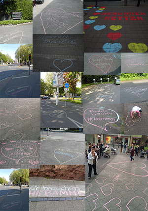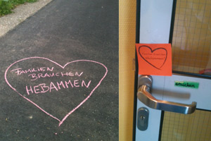 Jeder malt an diesem Tag Hebammen-Herzen auf alle Straßen, Gehwege, ÜBERALL mit Kindermalkreide.