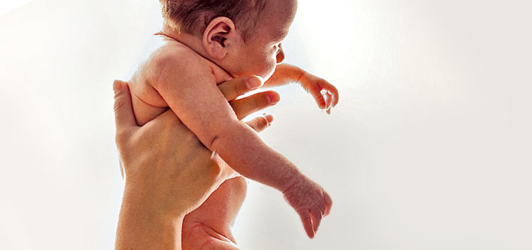 Gegen acht Uhr war Christine da. Sie ließ mir ein Bad ein, ich durfte mich entspannen, während die Hebamme und mein Mann vor der Wanne knieten. Und plötzlich waren die Wehen weg. Nach einer Stunde beschloss Christine, erst mal wieder zu fahren. Doch kaum war sie weg, ging es wieder los. Ich glaube, sie war noch nicht einmal zu Hause, als wir sie wieder zurückriefen. Und dann ging´s Schlag auf Schlag, Wehe auf Wehe. Ich lehnte im Wohnzimmer an der Kommode, während Martin mir mit einem Wärmekissen das Kreuzbein massierte. Christine hielt sich zurück, aber sie war immer präsent. Übrigens war von vornherein klar, dass sie, wenn es Schwierigkeiten geben würde und sie die Hausgeburt nicht zu Ende führen kann, sofort mit mir im Taxi zum nächsten Krankenhaus fährt.