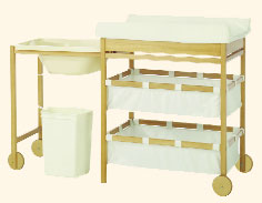 Die neuen, platzsparend konstruierten Bade-Wickel-Kombinationen der Serie Baby Pool treten als echte Multitalente auf. In jedem Zimmer und Winkel von Wohnung oder Haus – im Sommer sogar im Freien – kommt der Allrounder nach Bedarf zum Einsatz.