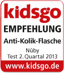 Die Anti-Kolik-Flasche von Nûby erhielt insgesamt die Schulnote 2,3. 69 % der kidsgo Testfamilien empfehlen die Anti-Kolik-Flasche weiter.