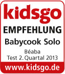 Für kidsgo testeten 10 Testfamilien den Babycook Solo. Alle Familien benutzten die Küchenmaschine zur Zubereitung von Babykost zum Teil mehrmals am Tag. Besonders überzeugten dabei Design und Handhabung des Gerätes. Alle Testfamilien fanden, dass sich im Babycook Babynahrung einfach und schnell zubereiten lässt. Auch in den Kategorien Qualität, Reinigung und Größe erzielte das Gerät gute bis sehr gute Bewertungen.