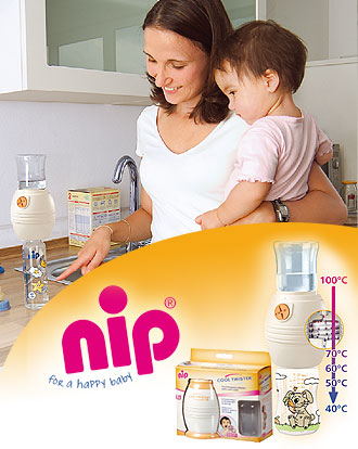 Der Cool Twister von nip kühlt abgekochtes Wasser innerhalb von 80 Sekunden auf die gewünschte Temperatur – ideal für wohltemperierte Babynahrung. Das Gerät ist klein, passt auf alle handelsüblichen Fläschchen und arbeitet ganz ohne Strom. Es funktioniert über einen Wärmetausch, bei dem kaltes Leitungswasser im Cool Twister dem abgekochten heißen Wasser die Wärme entzieht.