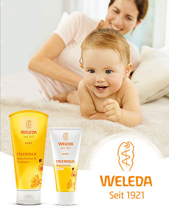 Die Babypflegeprodukte von Weleda mit Wirkstoffen der Calendula-Pflanze sorgen für reichhaltigen Schutz und sanfte Reinigung der zarten Babyhaut. Dermatologisch bestätigt ist bei beiden Produkten die sehr gute Hautverträglichkeit.