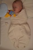 Die Ärmel werden ganz einfach mit Klettverschlüssen fixiert. Das Pucken bietet viele Vorteile. Es gibt dem Baby die gewohnte Begrenzung aus dem Mutterleib und erleichtert den Übergang in die Welt.