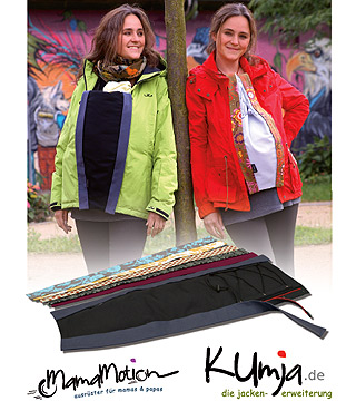 Die Jackenerweiterung Kumja setzt genau da an. Sie wird einfach mit dem Reißverschluss der eigenen Jacke verbunden und sorgt so für die fehlenden Zentimeter – aus deiner Jacke wird bereits in der Schwangerschaft eine Umstandsjacke und beim Babytragen eine Tragejacke. Mit einem intelligenten Adaptersystem lässt sich die Jackenerweiterung mit nahezu jeder Jacke verbinden. Die seitlichen Blenden sind in vielen trendigen Dessins erhältlich, sodass die Jackenerweiterung ganz individuell an die jeweilige Jacke angepasst werden kann.