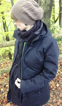 Claudia aus München schreibt: "Kumja ist eine tolle Erfindung, ich konnte meinen Wintermantel gut nutzen und brauchte keine weitere neue Jacke. Die Erweiterung ließ sich sehr leicht integrieren und es sieht aus, als müsste es so sein. Material und Farbe passen perfekt!"