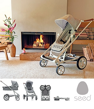 Ein schlichtes Design, feststellbare Schwenk-Vorderräder und ein innovativer Klappmechanismus zeichnen den Kombikinderwagen Papilio von Seed aus. Zusammengeklappt ist er nur 22 cm hoch und passt so nahezu in jedes Auto. Das Gestell aus Aluminium und Magnesium macht ihn leicht und stabil.