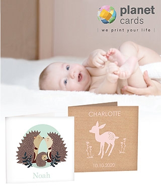 Eine Karte mit einem oder mehreren Bildern vom eigenen Nachwuchs mit wichtigen Details zur Geburt wie Gewicht, Größe und Zeitpunkt der Geburt – mit Planet Cards kannst du dir deine ganz persönliche Wunschkarte erstellen.