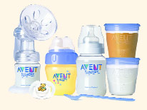 10 Frauen testeten mit ihren Babies (im Alter von 1-10 Monaten) das Ernährungs-Set von AVENT® bestehend aus ISIS™ Handmilchpumpe, Anti-Kolik-Weithalsflasche, VIA™ Aufbewahrungsbecher und Magic™ Trinkbecher.