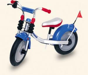 griffen, extra breite Luftbereifung mit Radschützern, kugelgelagerte Laufräder, abgedeckte Laufradfelgen, Kantenschutz und generelle Schraubenabdeckung, Pulverbeschichtung, CE Norm, TÜV geprüft - außerdem ein tiefer Einstieg, spezieller Laufradsattel, Lenkanschlag, Lenker und Sattel stufenlos verstellbar, vollgekapselte Hinterradbremse, verstellbare Kinderbremsgriffe, Wimpel.