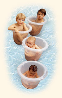 Ein einmaliger Badespaß vom 1. Tag bis zum 3. Lebensjahr. Entwickelt und empfohlen von und mit Hebammen, Kinderkrankenschwestern, Ärzten und