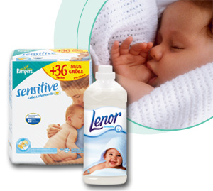 Nur das Beste für dein Baby: Die Sensitiv-Produkte von PAMPERS FEUCHTTÜCHERN und LENOR bieten Streicheleinheiten für dein Baby und sind dabei besonders sanft zu empfindlicher Haut.