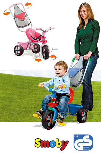 Das Baby Driver von Smoby ist Dreirad und Schiebewagen in Einem. Denn die höhenverstell- und abnehmbare Schiebestange ist mit dem Vorderrad verbunden, so dass Eltern jederzeit nach Bedarf die Richtung vorgeben können. Zur Ausstattung des GS-geprüften Dreirades von Smoby für Kinder ab 12 Monaten gehören unter anderem: ein verstellbarer Schalensitz, Sicherheitsgurt, rutschfeste Flüsterräder mit Reflektoren sowie eine Aufbewahrungstasche.