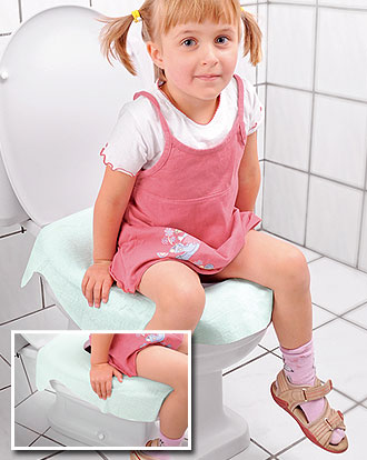 Öffentliche Toiletten sind meist unhygienisch und Brutherde für Keime, Bakterien und Viren. Aufgrund ihrer Größe haben Kinder beim Toilettengang keine andere Möglichkeit, als sich auf die Toilette zu setzen. Gerade Kleinkinder stützen sich auf der Klobrille ab und umklammern angesichts des fehlenden Hygienebewusstseins die verschmutzte Klobrille mit den Fingern. Bakterien und Viren gelangen nicht nur über die „Hinterlassenschaften“ der Vorgänger auf die Toilette, sondern werden beim Spülvorgang tausendfach auf der Klobrille verteilt, so besteht das Risiko einer Kontaktinfektion. Um Kleinkindern die selbständige und hygienische Toilettennutzung zu ermöglichen, hat reer eine kindersichere Einweg-Toilettenauflage für unterwegs entwickelt. Die extrabreite WC-Auflage mit seitlichen Hygieneflügeln verhindert den Kontakt mit der verschmutzten Toilette. Die Spezialfolie ist reißfest, keim- und wasserdicht und wird mit drei Klebepunkten fixiert. Die Oberfläche ist hautfreundlich und weich; die kleine Verpackung passt in jede Handtasche. Nach der Benutzung wird die WC-Auflage im normalen Müll entsorgt. So bietet sie unterwegs eine hohe hygienische Sicherheit für Kleinkinder ab zwei Jahren und die ganze Familie.